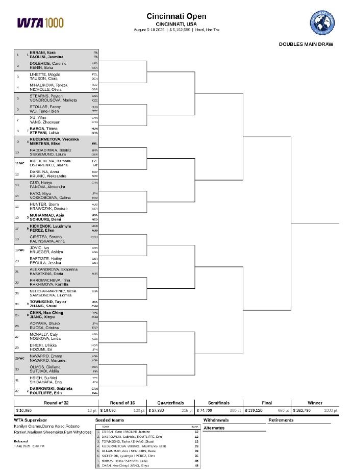 Zhang Shuai/Towsend WTA1000辛辛那提车站面对Merichal/Samsonova